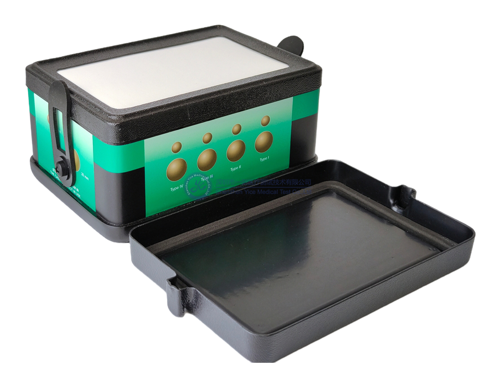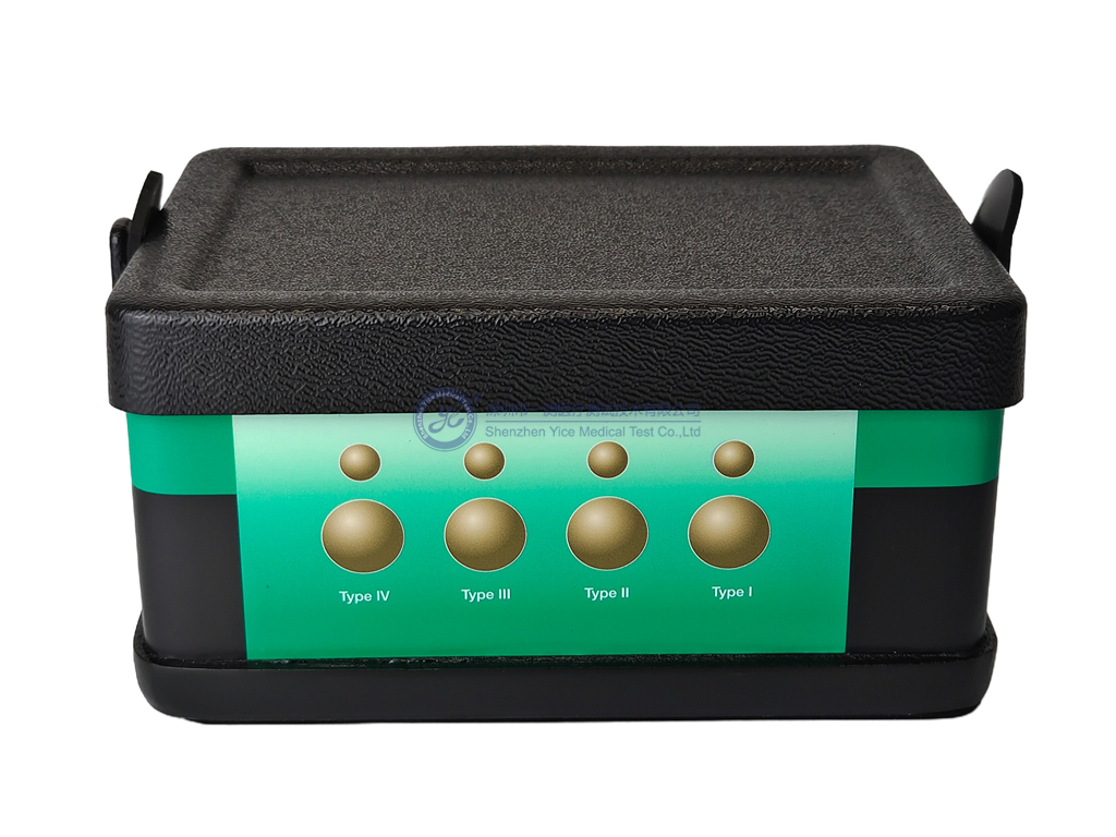 5.结构:共有8个球形靶块,分上下两组,直径10mm,15mm深度,每种硬度1个;直径20mm,35mm深度,每种硬度1个;每一组四个靶体(Type I、Type II、Type III和Type IV)硬度不同;