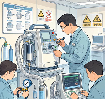 服务和维护。 呼吸机在使用前需要对每个新病人进行测试和验证。 此外,通常每年对呼吸机进行预防性维修。