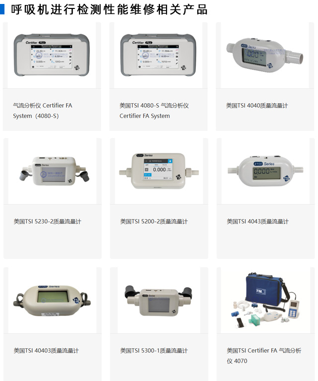 Certifier Flow Analyzer Plus不同型号的呼吸机使用不同的程序来验证其性能,但大多数呼吸机测试包括检漏、高低压精度、容积输送、空气和氧气流量精度以及报警检查。TSI的 Certifier Flow Analyzer Plus 是一个完整的功能系统,能够测试几乎所有型号的呼吸机:成人,儿科,麻醉,新生儿和高频。 该呼吸机测试仪旨在测量机构、家庭护理、现场服务、实验室和生产应用中的空气、氧气和氧化亚氮流量和压力。此外,TSI的一个部门MSP提供了一个 呼吸模拟器,它产生了与开发和测试呼吸机相关的各种病人呼吸剖面。